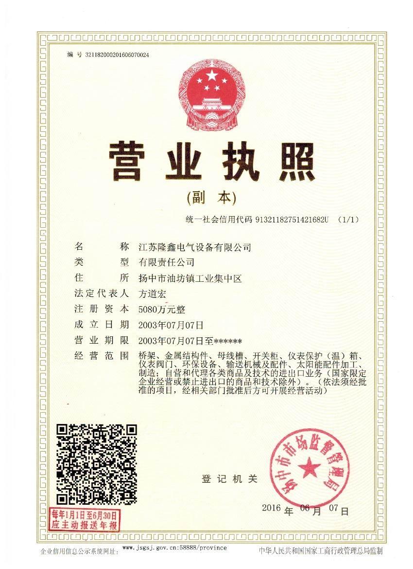 江蘇隆鑫電氣設(shè)備有限公司是集科研、設(shè)計(jì)、制造、安裝、技、工、貿(mào)一體化的專業(yè)生產(chǎn)型企業(yè),是工業(yè)管道閥門、儀表管閥配件、母線槽、匯線橋架、玻璃鋼制品的專業(yè)生產(chǎn)廠家。